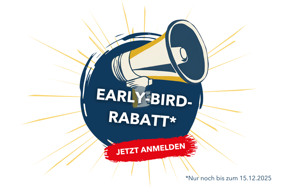 Buchen Sie bis einschl. 15.12.2025 und profitieren Sie von unseren Frühbucherkonditionen für die Präsenzteilnahme.